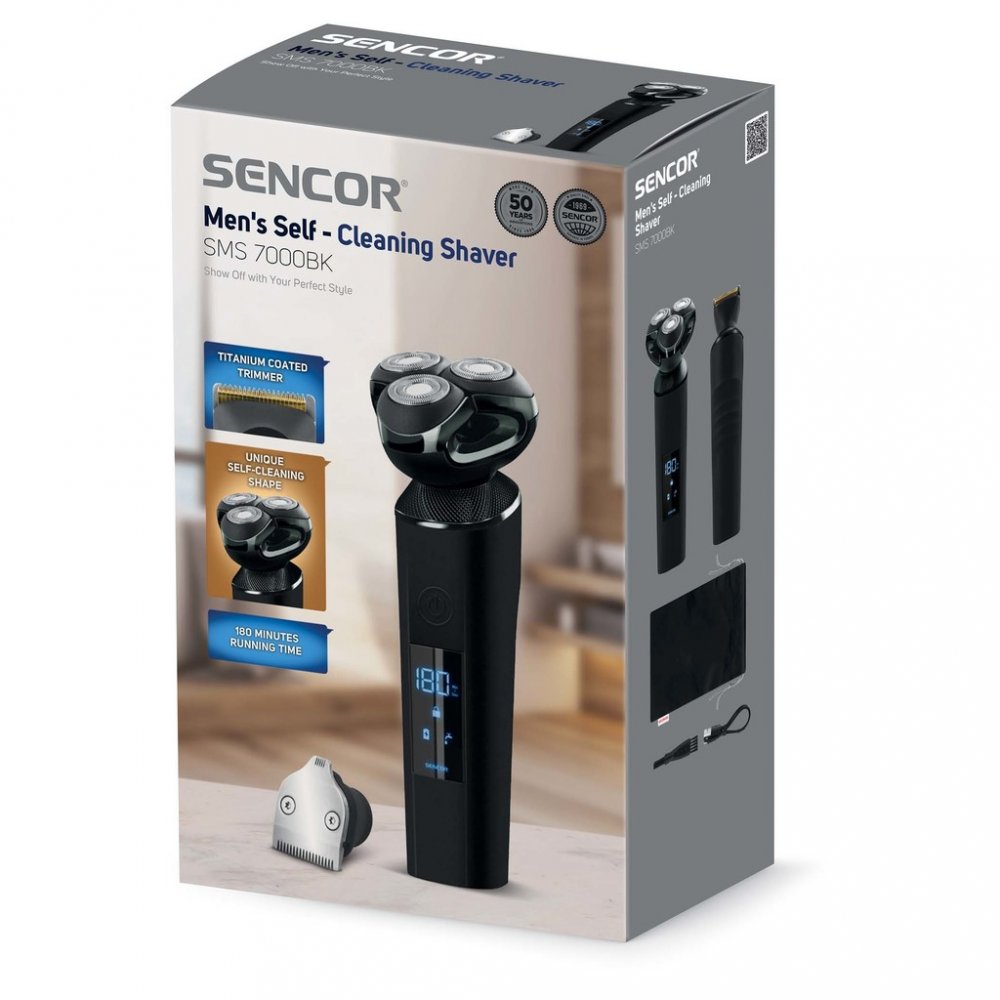 Samočistící holící strojek Technologie Direct Drive umožňuje přímé napájení ze síťové zásuvky při nabíjení Přístroj se napájí z baterie Přístroj se napájí ze sítě při nabíjení Přístroj se napájí okamžitě ze sítě při nabíjení, tudíž není potřeba čekat, až se nabije baterka po úplném vybití baterie Vysoce tichý profesionální vysokorychlostní motor zaručuje pohodlné holení vousů a chlupů Unikátní samočistící hlavice Určeno pro suché holení Břity z nerezové oceli Zastřihovač s vrstvou titanu Ergonomická rukojeť zabraňující prokluzu v ruce Plně omyvatelný pod tekoucí vodou LED display zobrazuje úroveň nabití baterie Doba provozu na akumulátor až 3 hodiny Technologie rychlého nabíjení poskytuje plné nabití za 3,5 hodiny Spínač ON / OFF (zapnuto / vypnuto) Funkce Safety lock proti samovolnému zapnutí Vestavěný akumulátor Li-Ion o kapacitě 2500 mAh Dodávané příslušenství: Čistící kartáček Zastřihovač USB nabíjecí kabel USB nabíjecí adaptér Délka přívodního kabelu: 170 cm Hmotnost: 210 g Rozměry (výška × hloubka × šířka): 170 × 66 × 59 mm