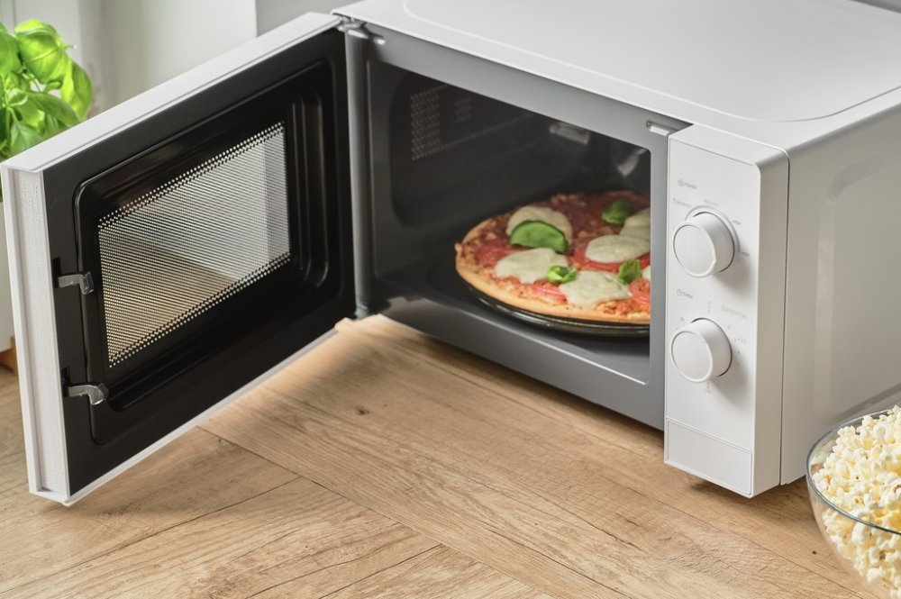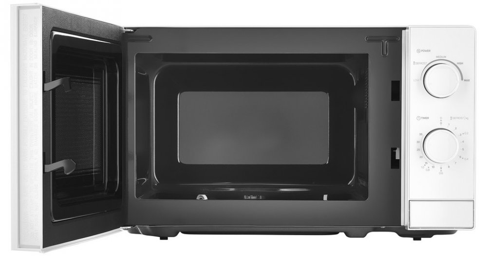 Mikrovlnný ohřev pro jednoduché a rychlé ohřátí a vaření, Trvanlivý interiér se smaltovaným povrchem pro snadné čištění, Snadnou manuální obsluhu zajišťují pouze dva ovládací knoflíky, Velký vnitřní prostor: Lze používat ještě větší misky až do 25,5 cm