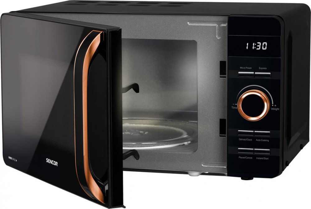 Praktická mikrovlnná trouba s LED panelem a luxusním provedením SlimCopper, která nabízí všechny základní funkce pro běžné vaření a ohřev.
