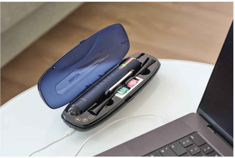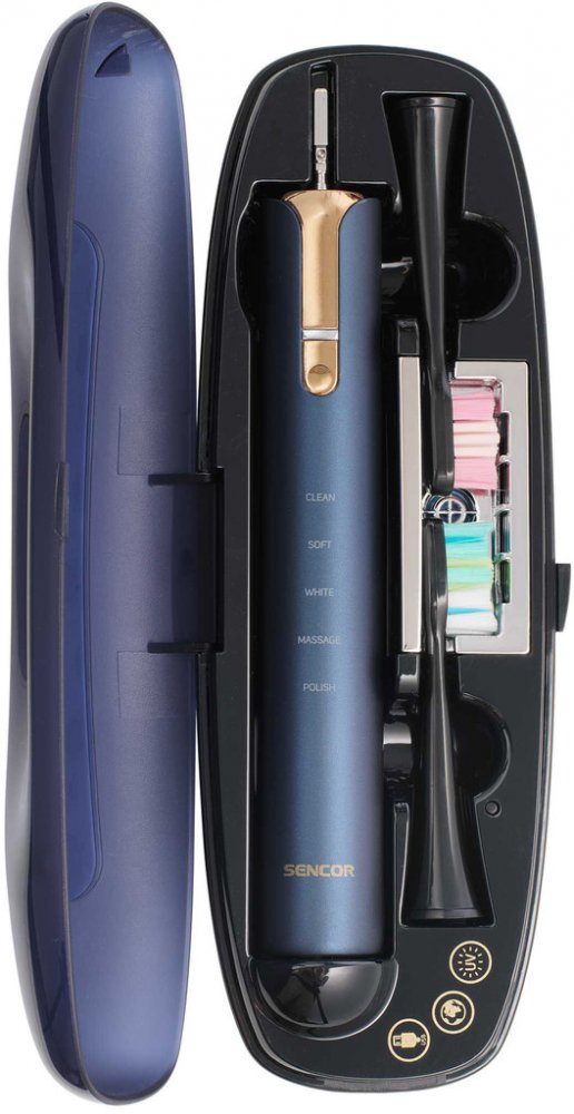 Kartáček je vybaven technologií Quadpacer, která hlídá ideální dobu čištění a rovnoměrně rozděluje péči mezi všechny části ústní dutiny. Díky mimořádné výdrži až 45 dní na jedno nabití je ideální i na delší cesty. Součástí balení je elegantní nabíjecí sklenička s bezdrátovým indukčním nabíjením a praktické cestovní pouzdro s UV sterilizátorem, které zajistí maximální hygienu kartáčkových hlavic. Sencor SOC 4110BL tak spojuje moderní technologie, vysoký výkon a stylový design pro každodenní dokonalou péči o váš úsměv.