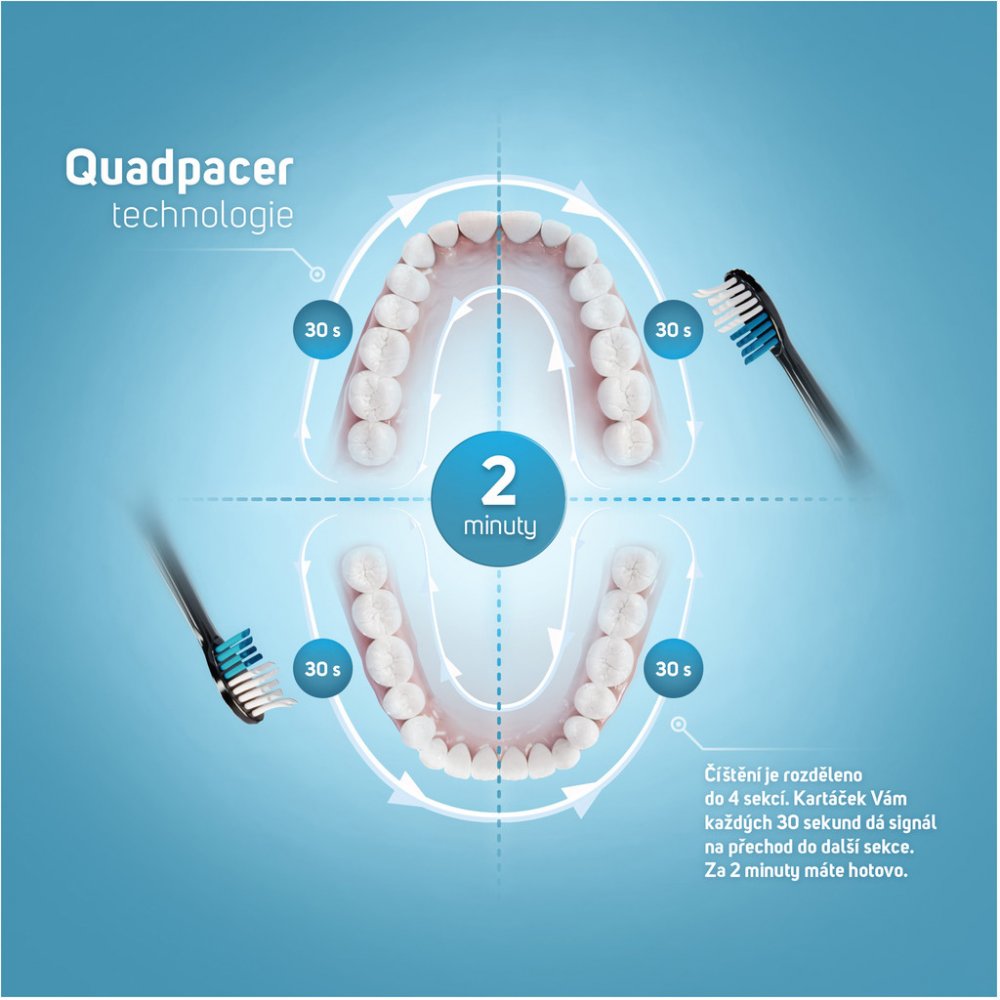 Chytrý časovač vám rozdělí čištění na 4 bloky pro nejlepší čištění díky technologii Quadpacer
