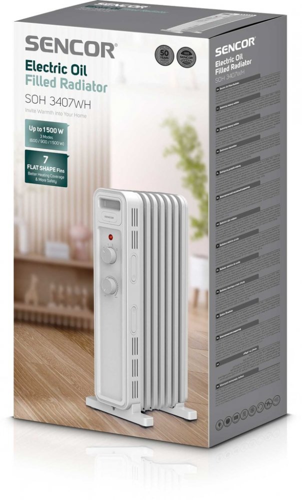 Olejový radiátor Sencor využijete tam, kde nestačí již instalované topení. Nabízený model pracuje s příkonem 1500 W. Pokud jde o teplotu v místnosti, tu lze snadno měnit, jelikož je obdařen třemi stupni výkonu. U elektrického radiátoru očekávejte rozměry 57 × 27 × 22,6 cm. Zásadní vlastnosti olejového radiátoru SENCOR SOH 3407WH Elektrický radiátor Sencor se vám bude hodit doma i na chatě Využijet...