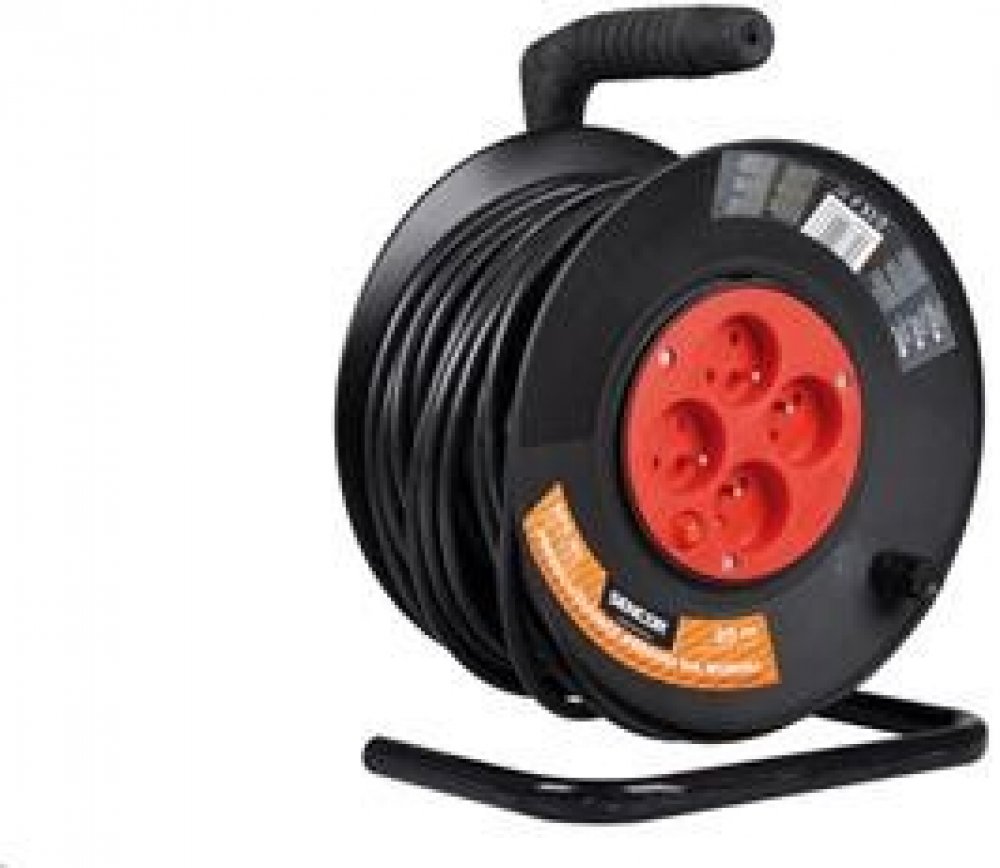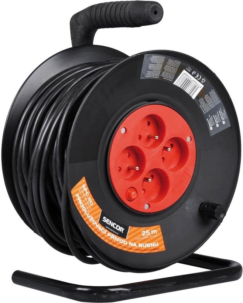 Kvalitní prodlužovací kabel značky Sencor o délce 25 metrů využijete pro připojení různých přístrojů. Vodič s průřezem 3 x 1,5 mm2 je navinutý na buben se 4 zásuvkami. Maximální zatížení může dosahovat 4,8 A / 1 100 W v navinutém stavu a 16 A / 3 680 W v rozvinutém stavu. Kabel má krytí IP20 a pro větší bezpečnost je vybavený tepelnou pojistkou.