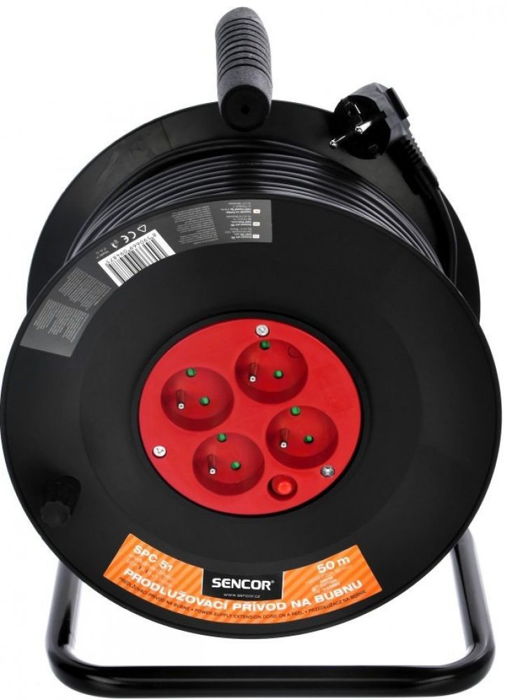 Prodlužovací přívod Sencor SPC 51 – buben, je vybaven čtyřmi zásuvkami. Je vhodný například na zahradu, či na stavbu. Jednoduché a rychlé navíjení vám ušetří spoustu času i energie.