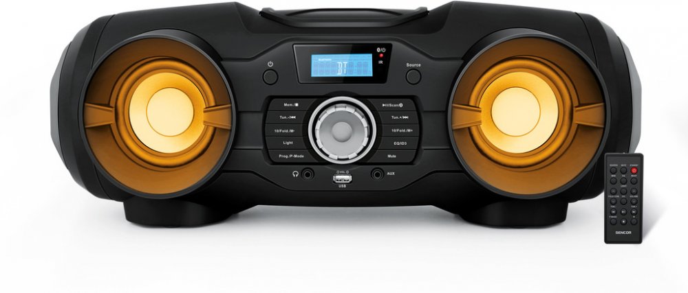Uspořádejte večírek s hudební reprodukcí kdekoliv chcete. Přenosný přehrávač Sencor lze napájet bateriemi typu D, takže není závislý na dostupnosti elektrické sítě.