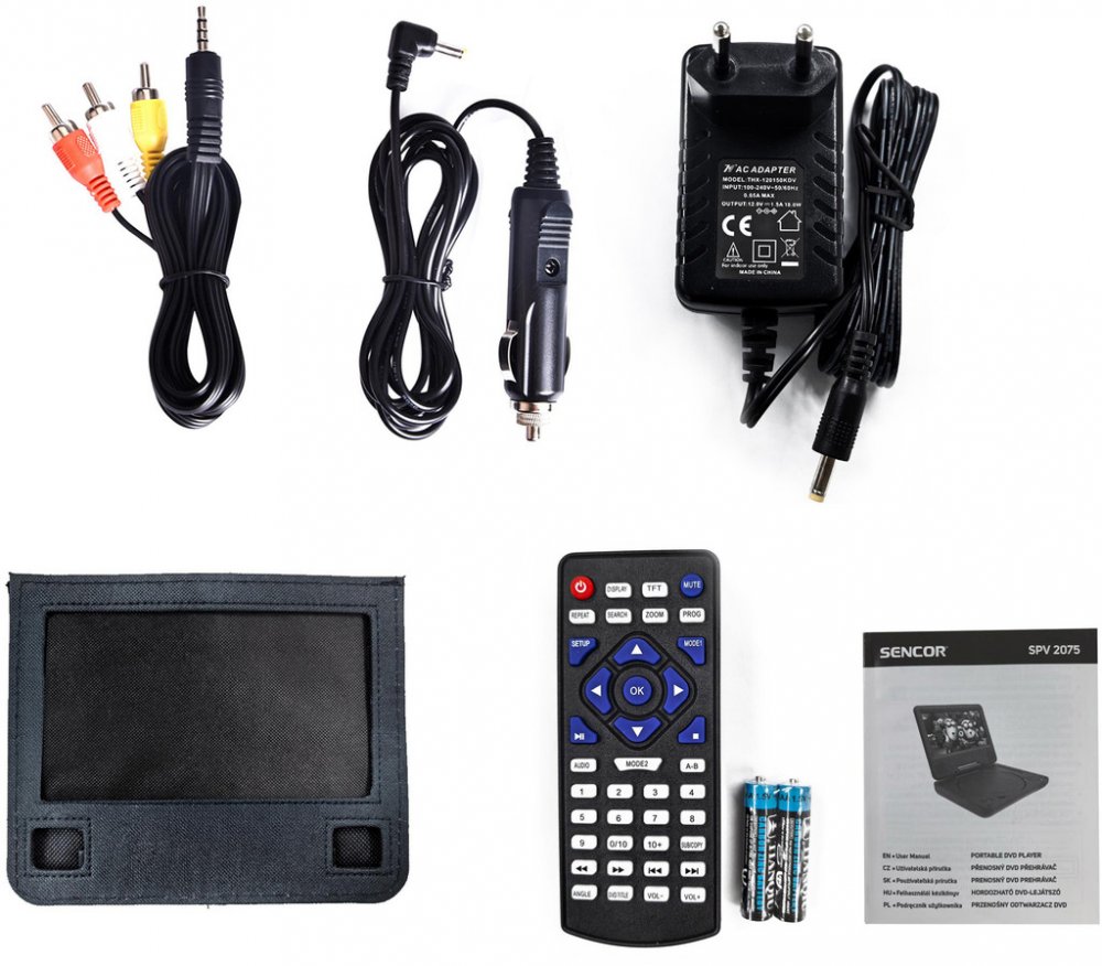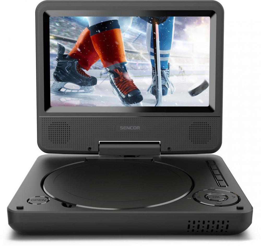 Přenosný DVD přehrávač - 7" LCD displej (800×480) • Přehrává DVD/CD/MP3/JPEG/MPEG-4/XviD • USB a SD slot (až 32 GB) • Vestavěné stereo reproduktory • Dolby Digital • Baterie 1000 mAh – výdrž až 3 h • AV vstup/výstup, sluchátka • Autonabíječka ovladač