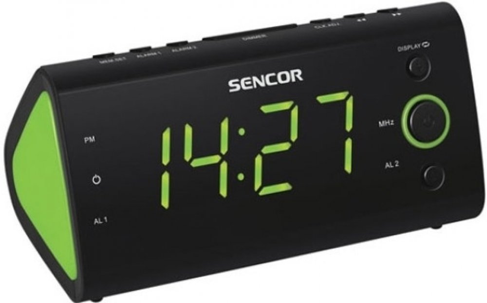 Radiobudík, jednoduché tlačítkové ovládání, podsvícený LED displej, vestavěný teploměr, kalendář, buzení tónem/rádiem, paměť na 10 stanic, funkce Sleep