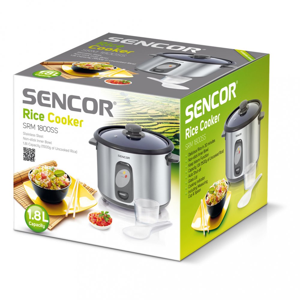 Rozvařená nebo naopak tvrdá rýže je minulostí. Rýžovar Sencor SRM 1800SS s plně automatickým provozem připraví všechny druhy rýže (včetně rýže na Sushi) naprosto dokonale. Vy se tak budete moci věnovat příjemnějším věcem, než je pobíhání kolem plotny. Do nádoby o objemu 1,8 l se vejde až 1500 g rýže, takže perfektně obslouží i velmi početnou rodinu či menší restauraci.