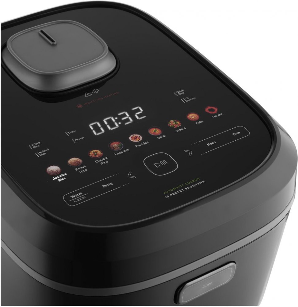 Speciální metoda indukčního ohřevu pro rovnoměrný a rychlý ohřev a vaření dokonalé rýže / Objem 3 l - ideální pro celou rodinu / 13 přednastavených programů pro všechny druhy rýže, kaše, polévky a další pokrmy / Dotykový displej / Prémiový vnitřní hrnec s nepřilnavým povrchem