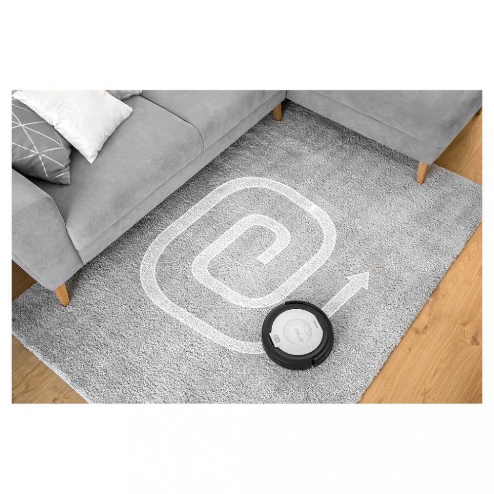 Přední půlkruh na těle vysavače funguje jako odpružený nárazník. Potká-li se vysavač s překažkou tlumeně se od ní odrazí a objede ji. Díky gumovým kolečkům jezdí robotický pomocník bez problému na každém povrchu a nepoškodí vaši podlahu. Dokáže překonat přechodové lišty do výšky 1 cm a přejede i koberec do výšky 2 cm.