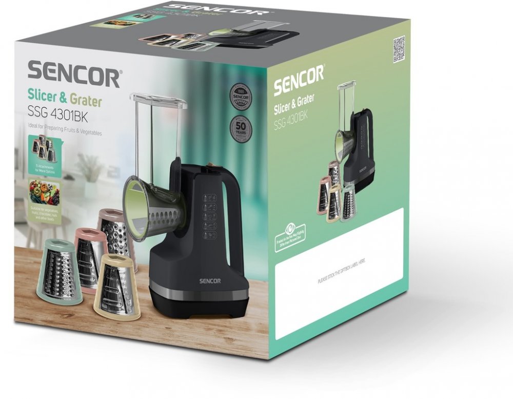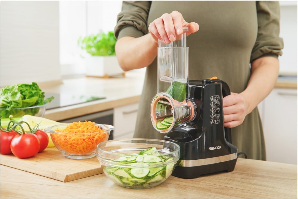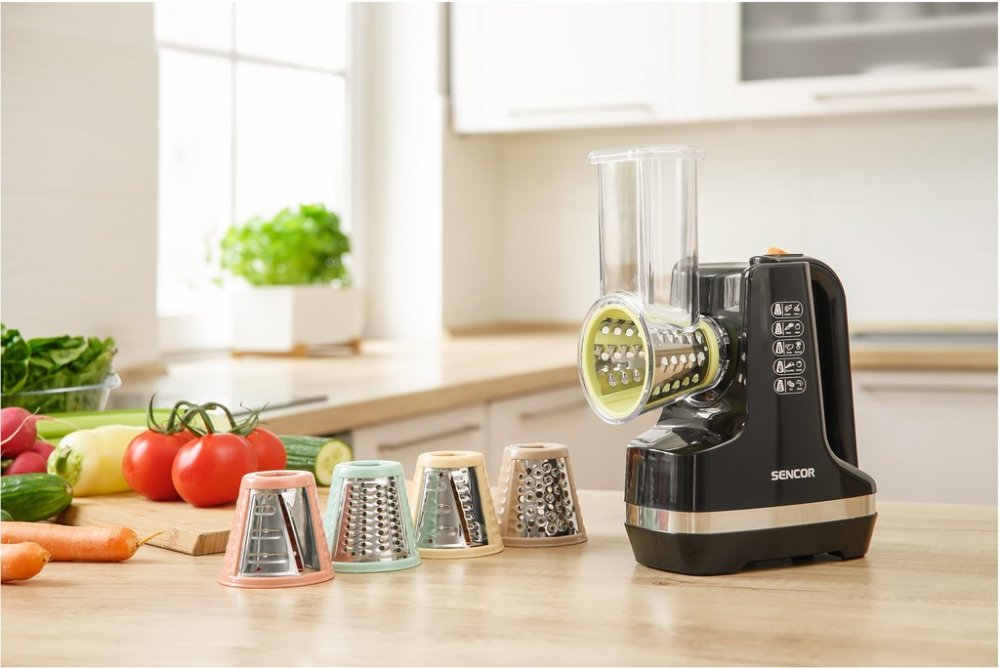 Pripravte si zdrava a chutna jidla a zaroven usetrete cas v kuchyni. K tomu vam pomuze univerzalni krajec SSG 4301BK. Pomocnika v modernim, prostorove uspornem designu umistite na kuchynskou linku, kde bude bezpecne stat na protiskluzovych nozickach, a zapojite do elektricke site. Tvar krajeni a strouhani zvolite nasazenim jednoho z 5 prilozenych nastavcu. Staci stisknout tlacitko spusteni motoru a muzete vkladat suroviny.