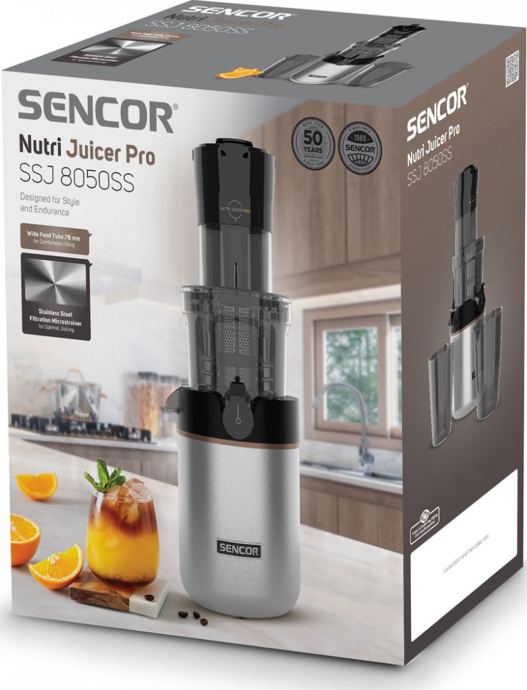 Špičkový model od Sencor Nutriline navržený pro domácí přípravu čerstvých šťáv – zvládá i tvrdé ingredience jako celer, zelený ječmen nebo kořenovou zeleninu.