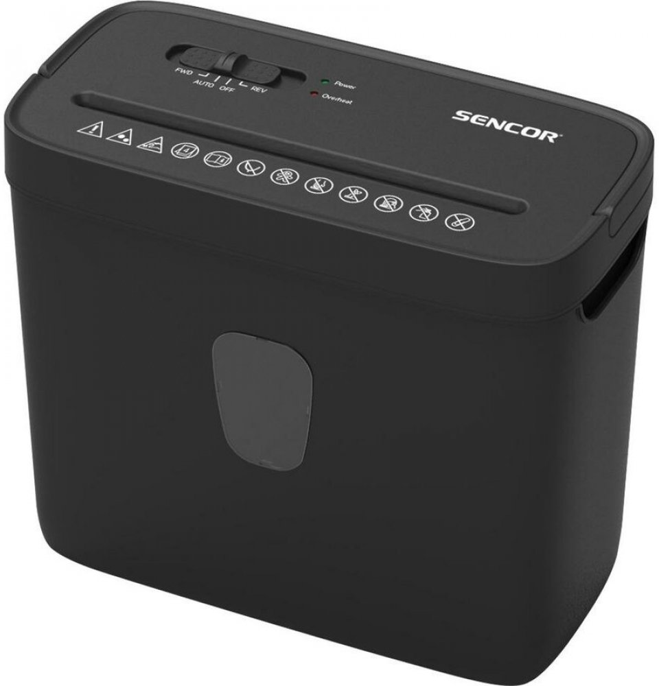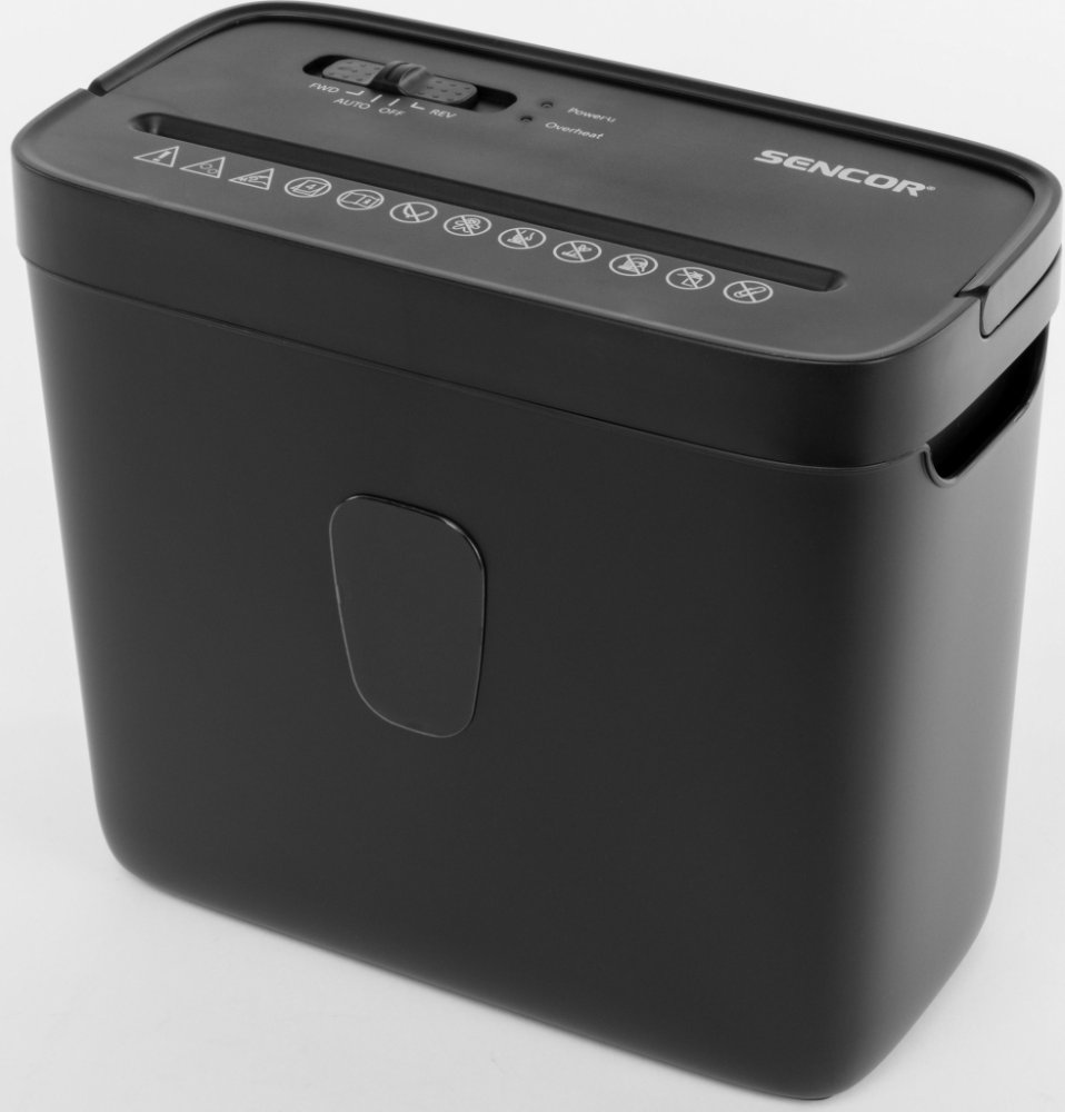 Sencor s křížovým řezem snadno současně skartuje až 4 listů papíru s rychlostí 2,5 m/min. Stupeň utajení P-4 odpovídá vyššímu stupni pro skartaci vysoce citlivých dat. Kousky materiálu jsou následně ukládány do koše s objemem 8 l. Funkci automatického startu spustíte přiložením papíru ke skartovači. Ochranu přístroje zaručuje pojistka proti přehřátí nebo přetížení. Disponuje také funkcí zpětného chodu pro případ zaseknutí při skartování. Rozměry skartovače Sencor činí 29,5 × 27,5 × 15 cm.