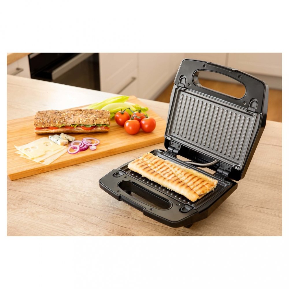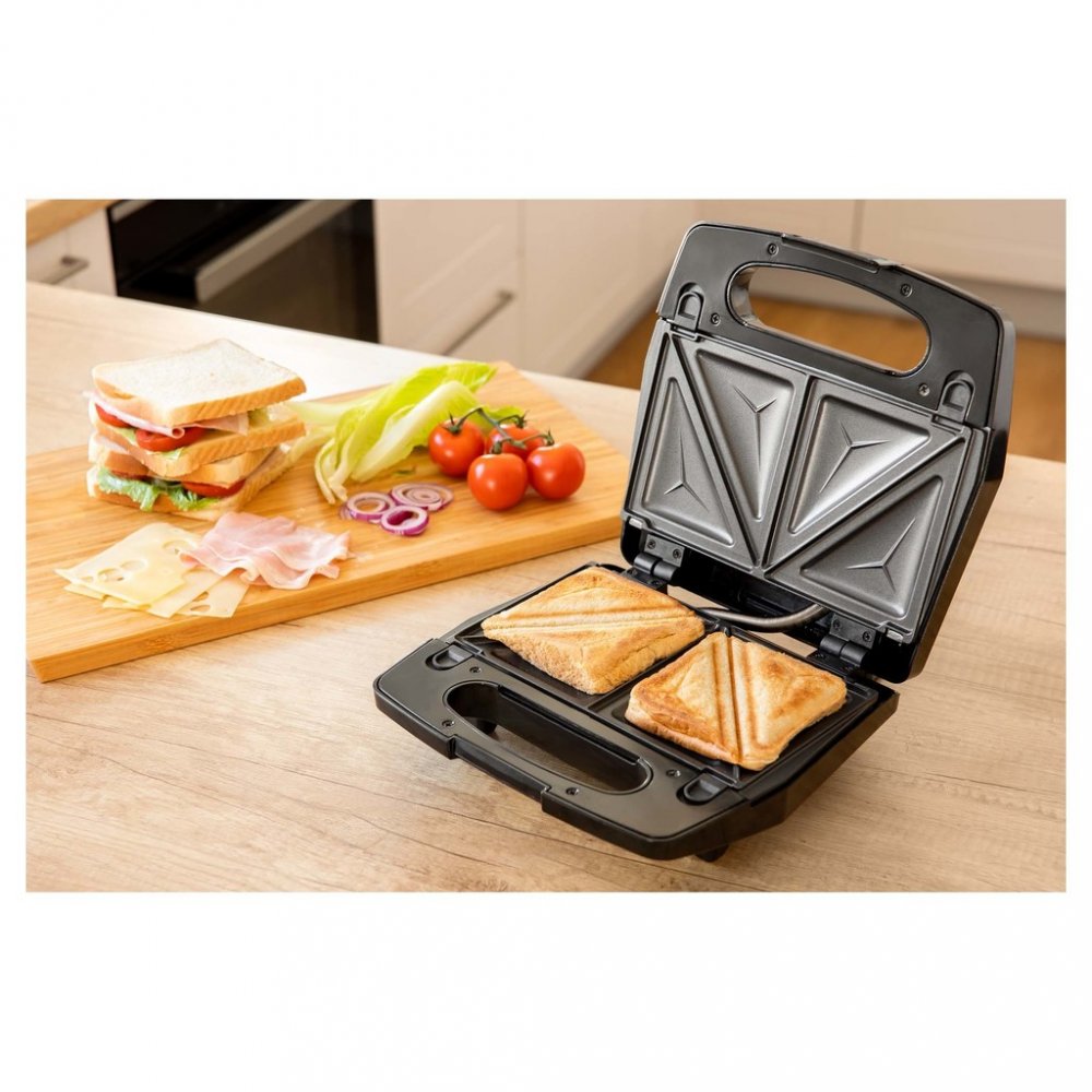 Praktický sendvičovač 3 v 1 s výměnnými deskami pro přípravu trojúhelníkových sendvičů, panini a křupavých vaflí. Díky nepřilnavému povrchu a automatické regulaci teploty bude příprava vašich oblíbených pokrmů snadná a rychlá.
