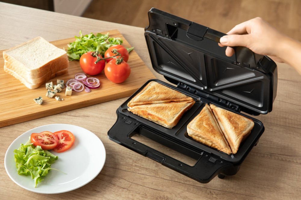 Chystáte se na výlet nebo jen potřebujete přichystat rychlou večeři nebo svačinu do zaměstnání a ratolestem do školy? Sáhněte po pečicí desce pro přípravu trojúhelníkových toastů.Můžete vsadit na ověřenou klasiku a naplnit je plátky sýra a šunky. Existuje však nespočet variací, které lze obměňovat dle chuti. Zaexperimentujte s přidáním koření (sladká paprika), zeleniny (rajčata) nebo se zaměřte na speciální sýry a různé druhy chleba.