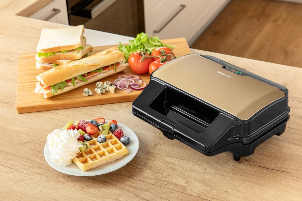 Zapečené dobroty se Sencor sendvičovačem s výměnnými deskami SSM 9977CH.