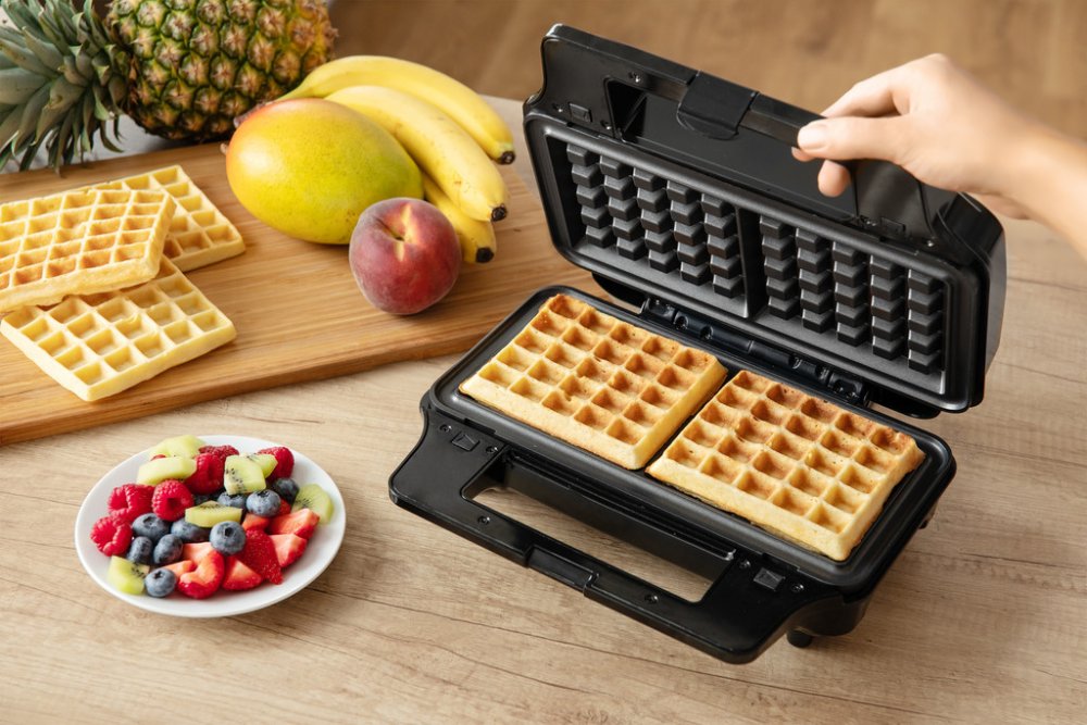 Nasaďte pečicí desku pro tvorbu vaflí a nastartuje den sladkým ránem. Výborný sladký brunch si díky sendvičovači naservírujete i doma. K tvorbě těsta budete potřebovat máslo, cukr, vejce, mouku, mléko, rum a prášek do pečiva. Pomalým nalévání do určených forem a pečením po dobu tří až pěti minut docílíte krásně nadýchaných vaflí.Přidat na ně lze džem, oříškový krém, šlehačku, kakao, ovoce. Detailní postup pro tvorbu vaflí najdete v návodu.
