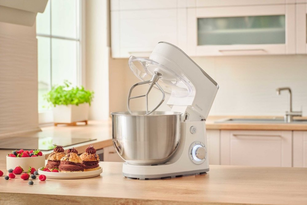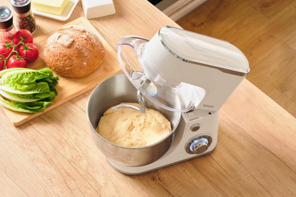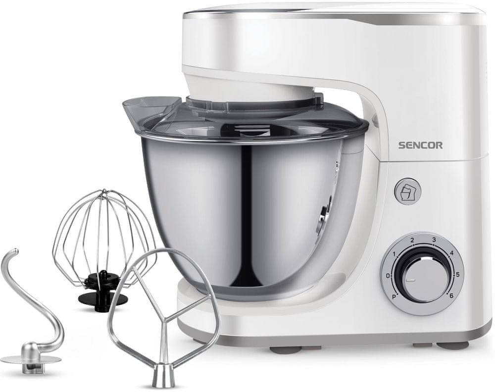 Kuchyňský robot Sencor STM 3630WH je nepostradatelnou součástí každé kuchyně. Disponuje silným výkonem 1 300 W a plynulou regulací rychlosti. Multifunkční použití oceníte během přípravy hlavních chodů, kynutého těsta, pomazánek a dezertů. Během chvíle zpracuje těsto pro domácí chleba a další pečivo, opatrně připraví křehké těsto na vánoční cukroví a vyšlehá nadýchaný krém pro narozeninový dort. Nerezová nádoba má objem 5,5 litrů a je vybavena ochranným štítem proti rozstřiku obsahu na pracovní desku. Manuální ovládání má strategické umístění, nabízí 6 stupňů rychlosti a má pulzní spínač. Uvolnění páky pro snadné zvednutí je pomocí tlačítka. Během přípravy šetří váš čas, stačí vložit ingredience a nechat ho pracovat v ideálním tempu. Kuchyňský robot má příslušenství pro šlehání, míchání a hnětení: hnětací hák na kynutá těžká těsta nebo těstoviny, pro domácí pizzu nebo chleba; míchací metla pro lehké a vzdušné těsto a dokonalé propojení surovin, během zpracování vhání do směsi dostatek vzduchu jako při ručním míchání; balónová šlehací metla pro luxusní šlehačku a krémy a nadýchaný sníh z bílků; průhledný ochranný kryt brání postříkání a má otvor pro přidávání dalších ingrediencí. Plynulá regulace rychlosti. Hmotnost 4,59 kg. Rozměry: 26,9 x 41,2 x 37 cm.