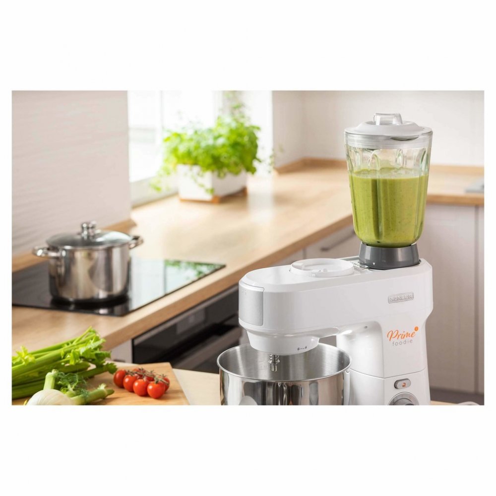Tento kuchyňský robot je ideální volbou pro všechny, kteří potřebují robustní a výkonný přístroj pro přípravu různých druhů těst, šlehání nebo mletí surovin. Má silný motor o výkonu 1 000 W, který zajišťuje efektivní práci při všech typech přípravy jídel. S 4,5l nerezovou nádobou je dostatečně velký pro přípravu různých těst, a to až 0,8 kg tuhých těst nebo 2,2 l jemných těst. Nabízí 6 nastavení rychlosti, funkci PULSE pro krátkodobý maximální výkon a dva NutriSmart programy pro efektivní zpracování potravin. Unikátní LED osvětlení umožňuje snadnou kontrolu konzistence těsta, což vám pomůže zajistit perfektní výsledky.Robot je vybaven 4 nástavci pro hnětení a šlehání, včetně FLEXI šlehače a FLEXI metly, které jsou speciálně navrženy pro jemná těsta a krémy. Unikátní magnetická víka zajišťují bezpečné a snadné používání během přípravy. Kromě toho robot obsahuje mixér s 1,5l skleněnou nádobou a ostřím potaženým titanem, což zaručuje dlouhou životnost a snadné sekání nebo míchání potravin. Součástí je i mlýnek na maso s nástavci pro hrubé a jemné mletí a plnění klobás, což usnadňuje přípravu domácího mletého masa. Pro přípravu cukrovinek je k dispozici tvořítko na cukroví.Tento kuchyňský robot nabízí široké možnosti pro přípravu všech druhů jídel a díky různým funkcím a příslušenství je ideální pro domácí kuchyně, kde se využívá na maximum.