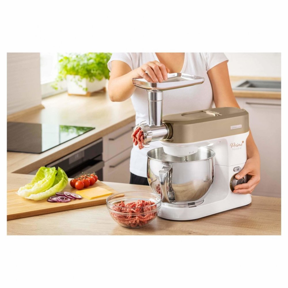 S mlýnkem na maso si budete moct sami umlít maso na požadovanou hrubost. Součástí je i nástavec na plnění klobás, 3 nástavce na přípravu těstovin a tvořítko na cukroví.