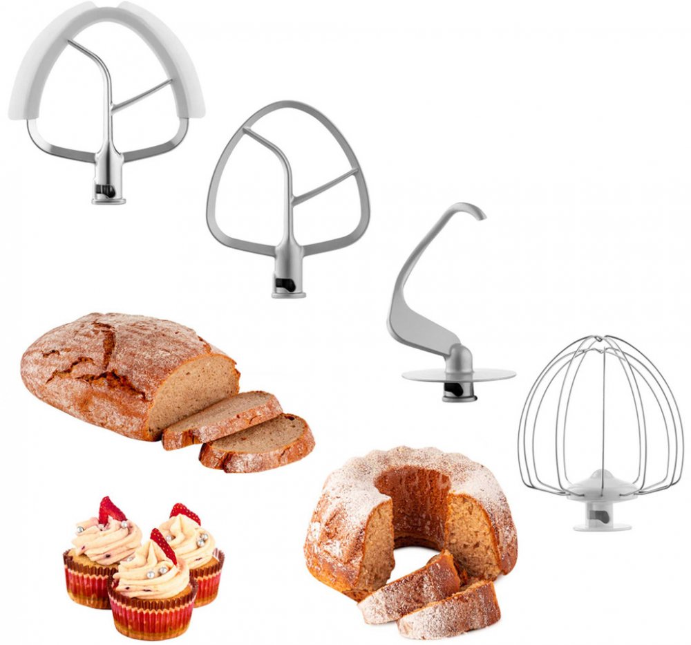 Odolný hák na hutná těsta, metla se stěrkou na krémy