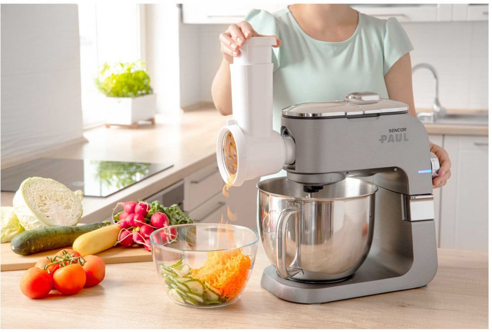 Usnadněte si práci a dejte prostor multifunkčnímu kuchyňskému robotu Sencor STM 7970, který hněte, mixuje, namele maso, strouhá a drtí koření, a to během okamžiku. To vše zvládne jeden přístroj v odolné celokovové konstrukci s kvalitními kovovými převody. Výkonný motor o příkonu 1 700 W, planetární systém míchání a funkce Smart Power & Energy zajistí rychlé a precizní zpracování všech ingrediencí. K dispozici máte 2 nerezové mísy (6 a 6,5 l) pro přípravu většího množství surovin a praktický skleněný mixér o objemu 1,5 l.
