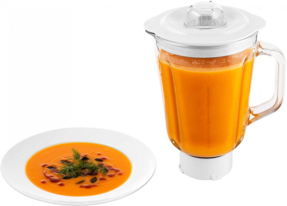 Díky 1,5l skleněné mixovací nádobě vykouzlíte krémové polévky s hladkou konzistencí a bez hrudek. Kousky ovoce a zeleniny proměníte v osvěžující koktejly plné vitamínů, ať už se chystáte na zdravou svačinu nebo vydatné smoothie před tréninkem.