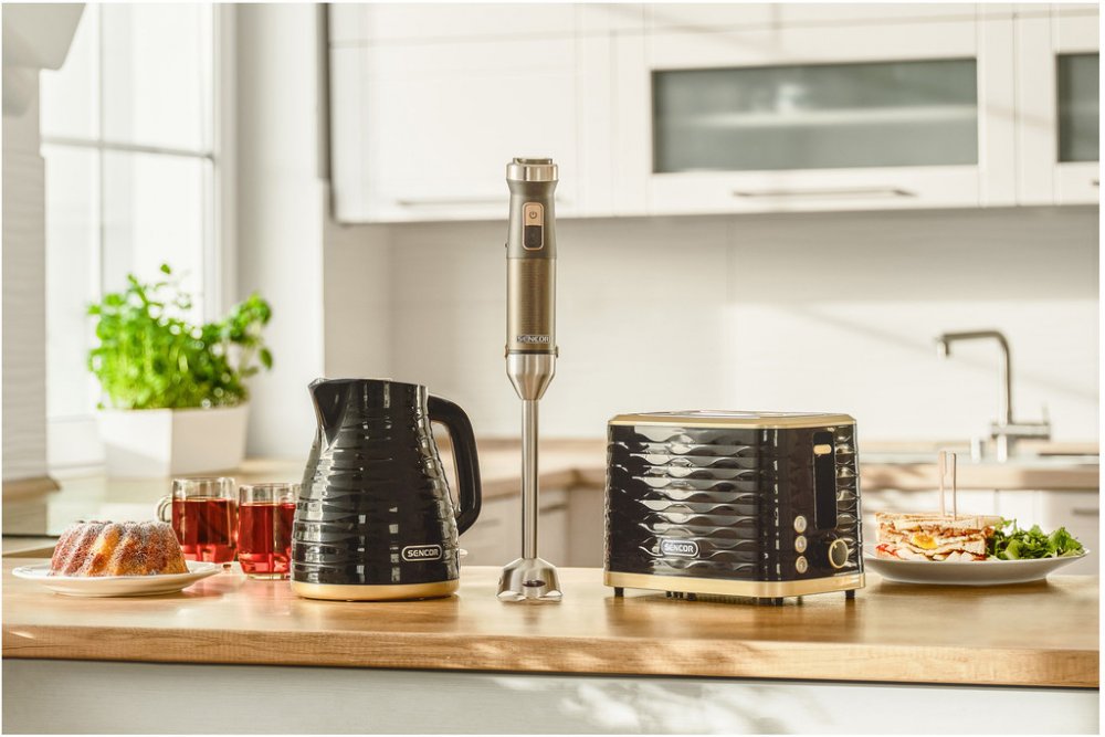 Dokonale sladena kuchyne? Ano Topinkovac Sencor STS 7501BK muzete totizdoplnit o designove propracovanou rychlovarnou konvici Sencor SWK 7501BK ve stejnem vzhledu ci sadu obohatit o moderni tycovy mixer SHB 6442BK.