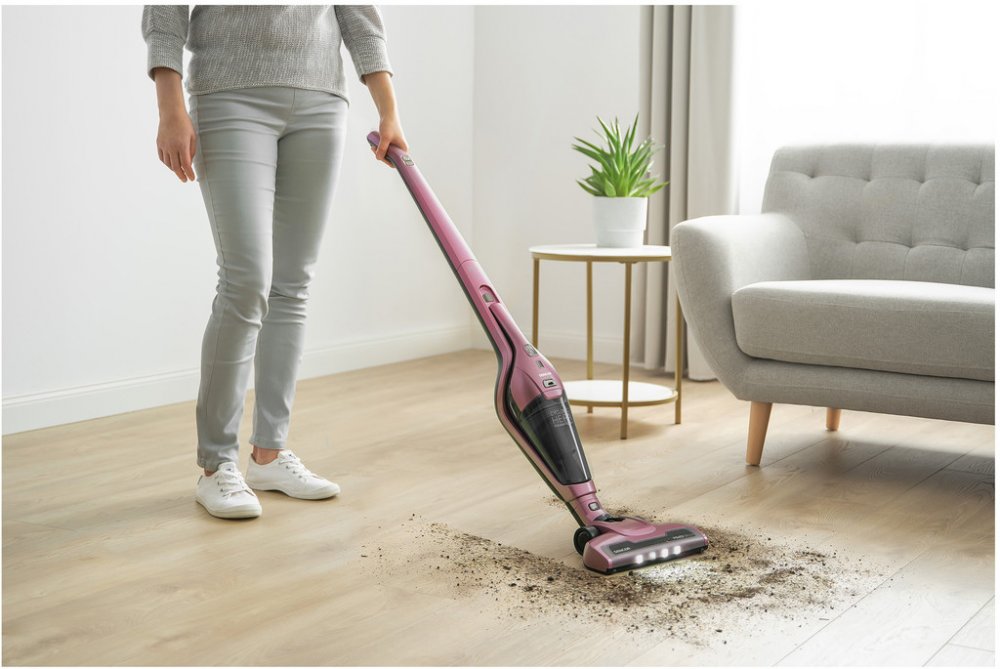 Lehký a snadno ovladatelný vysavač nabízí rychlé a jednoduché řešení pro každodenní úklid všech typů povrchů. Naprostá volnost pohybu bez napájecího kabelu. Skvělá ovladatelnost a snadné manévrování okolo nábytku díky hubici otočné v rozsahu 180° a nízké hmotnosti vysavače. Funkce samostatného stání pro dočasné odstavení i pohodlné uložení.