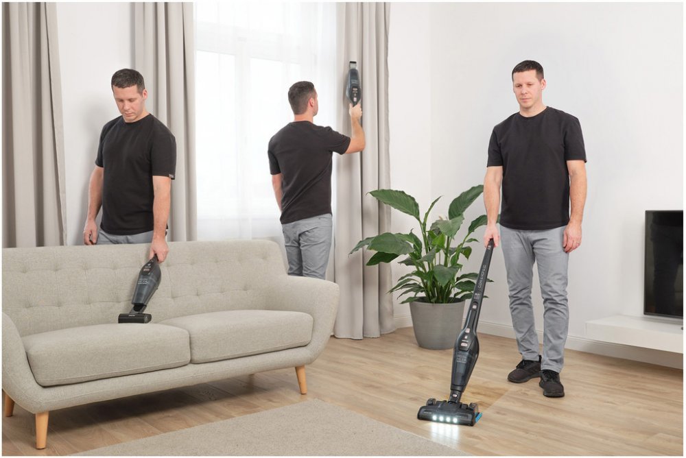 Skvělá ovladatelnost a snadné manévrování okolo nábytku díky hubici vysavače otočné v rozsahu 180° a nízké hmotnosti vysavače