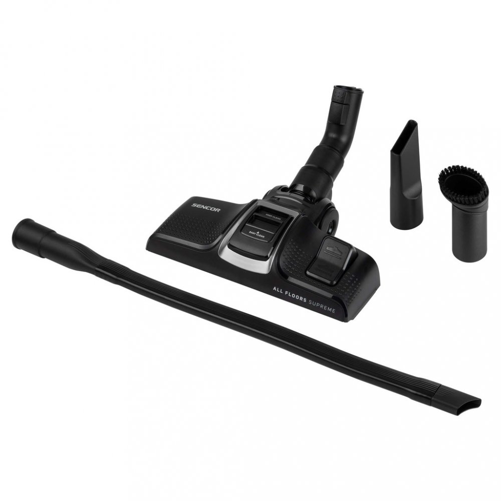 Součástí balení je univerzální podlahová hubice, štěrbinová hubice, prachový kartáč i flexibilní nástavce pro rohy či nábytek. Díky XXL teleskopické trubici s nastavitelnou výškou se přizpůsobí každému uživateli. Akční rádius 10 m (kabel 7 m) umožní vysát až 314 m² bez nutnosti častého přepojování. Měkčená kolečka chrání podlahy před poškrábáním a usnadňují pohyb.