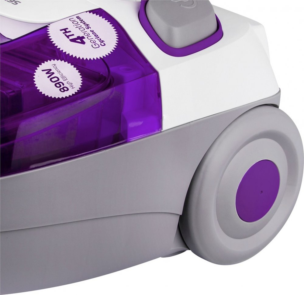 Bezsáčkový vysavač Vysoce účinný 890 W ECO motor Hlučnost 76 dB Nový systém 4th Generation Cyclone pro dokonalé oddělení prachu od vzduchu zachytává více prachu už na 1. stupni filtrace a šetří tak H.E.P.A. filtr 4th Generation Cyclone System odbourává nutnost výstupního H.E.P.A filtru 2dílná plastová trubice Omyvatelný vstupní H.E.P.A. filtr (třída H10) Omyvatelný vstupní mikrofiltr Omyvatelný vý...