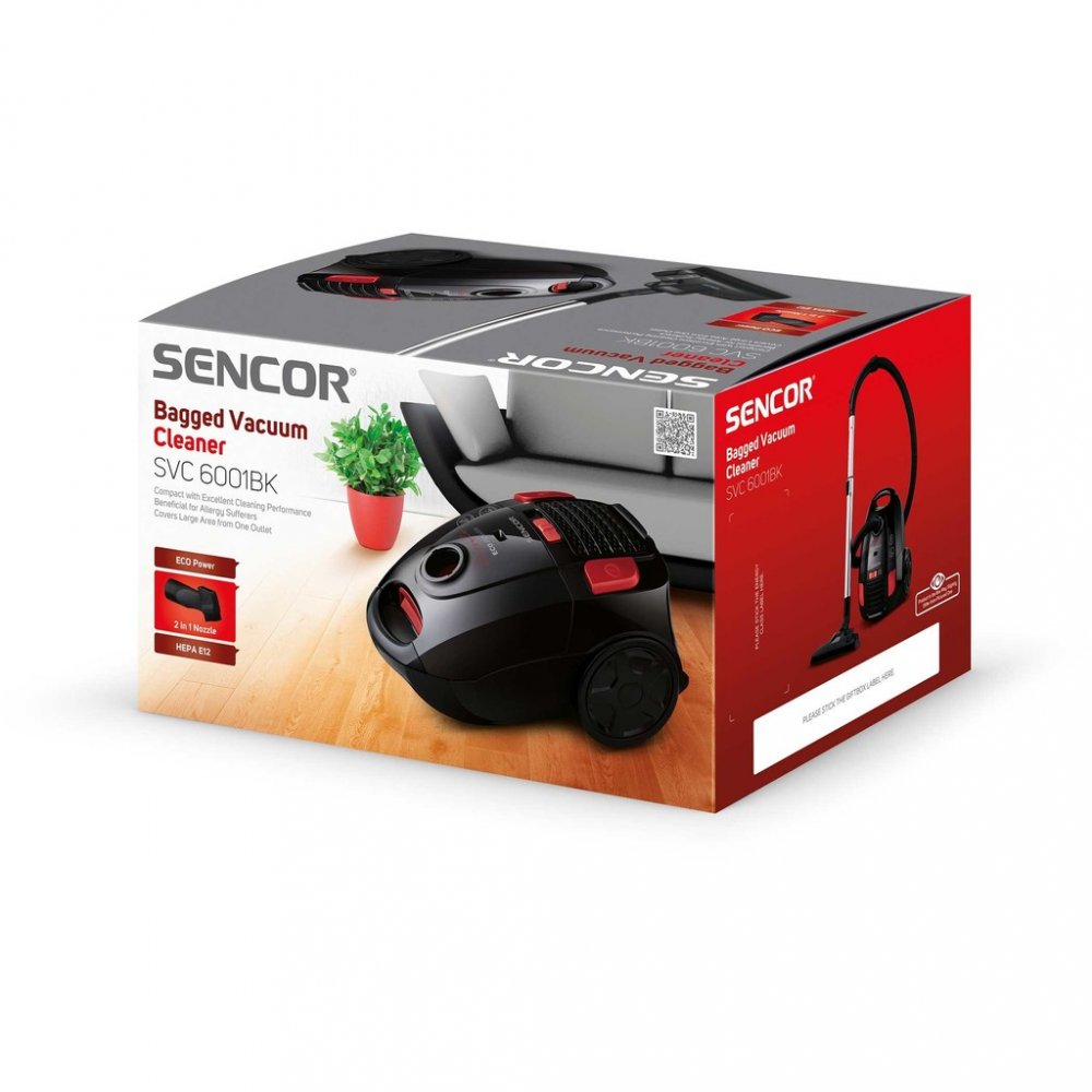 Vybavím vaši domácnost jako Sencor sáčkový vysavač SVC 6001BK. Jsem skvělý parťák k odstranění nečistot a pyšním se vysokou třídou účinnosti 3AAA Eco Power. Perfektně uklízím podlahy, účinně filtruji prach i alergeny, a to vše s minimální spotřebou elektřiny. Sencor mě také opatřil výkonným motorem 700 W, který dlouho vydrží a dokážu s ním vygenerovat účinnou sací sílu.
