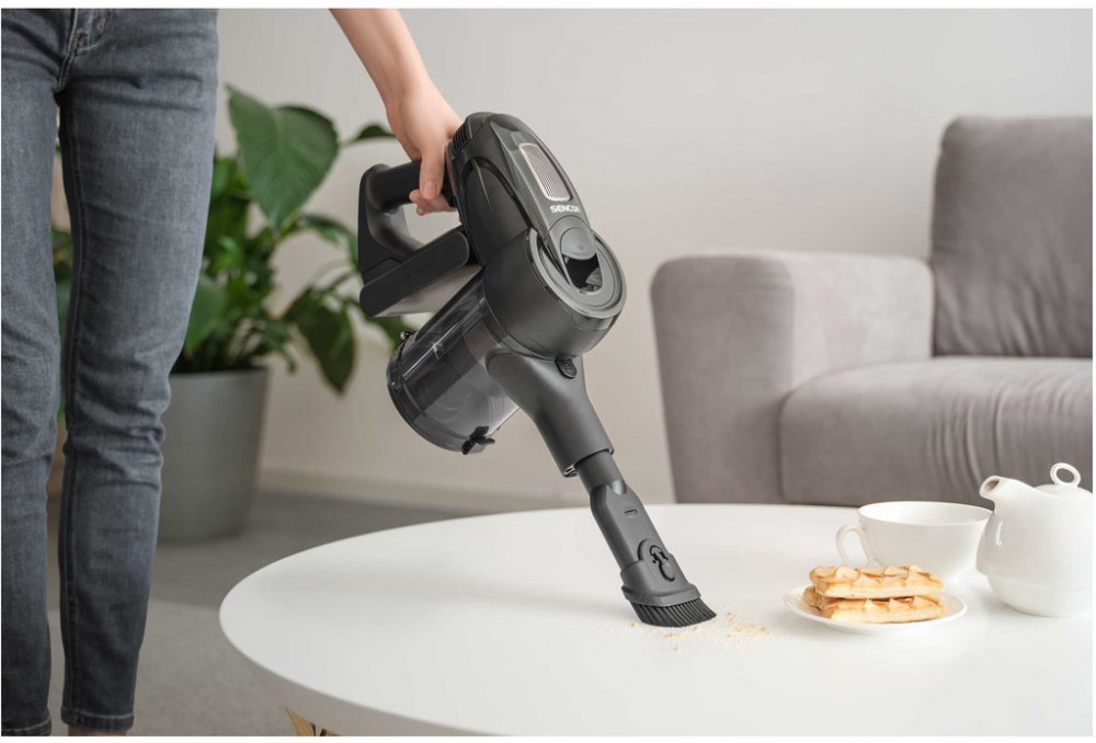 Tyčový vysavač Sencor SVC 8726BK 4 v 1 s mopem a odnímatelnou ruční jednotkou. Digitální 400W motor a rotační kartáč s vlastním motorem zaručují vynikající výsledky na jakémkoli typu podlahs leštícím efektem na tvrdých podlahách. Díky vysoce účinné 25,2V Li-Ion baterii s kapacitou 2 500 mAh dokáže pracovat až 50 min na jedno nabití. 3 stupně výkonu - turbo, vysoký výkon a denní úklid. Prostor úklidu je osvětlen pomocí praktického LED světla na hubici vysavače. Všechen prach a nečistoty jsou odvedeny do nádoby na prach s kapacitou 0,5 l.