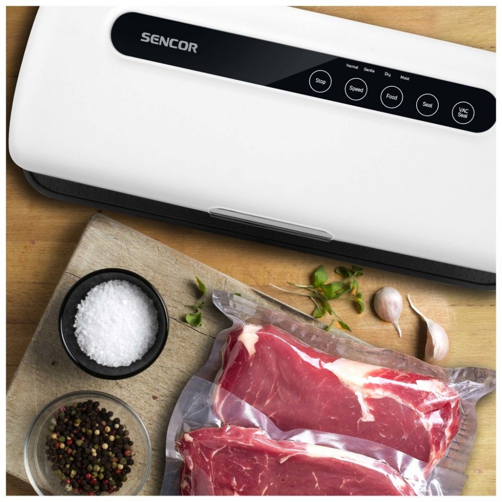 Díky vakuové baličce Sencor snadno uchováte potraviny déle čerstvé a kvalitní. Kromě toho prodloužíte i jejich trvanlivost až na pětinásobek. Vakuováním také zachováte veškeré nutriční hodnoty a původního aroma potravin, taktéž se nebudou vysušovat. Vakuovat lze jak suché, tak i mokré potraviny.