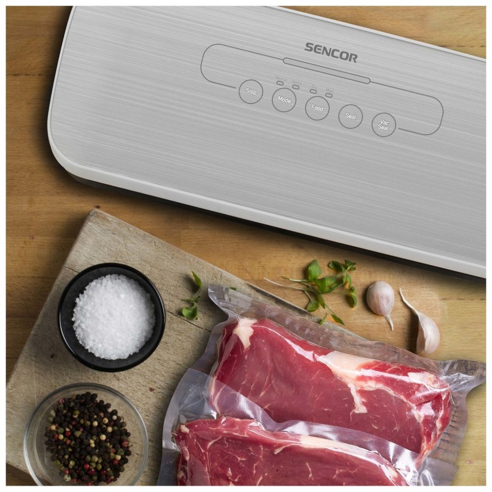 Díky vakuové baličce Sencor snadno uchováte potraviny déle čerstvé a kvalitní. Kromě toho prodloužíte i jejich trvanlivost až na pětinásobek. Vakuováním také zachováte veškeré nutriční hodnoty a původního aroma potravin, taktéž se nebudou vysušovat.