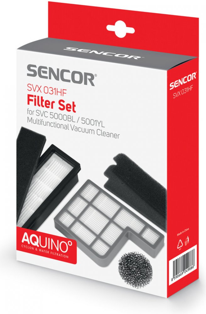 Sada originálních filtrů SVX 031HF značky Sencor doplní výbavu vysavačů Sencor SVC 500x. Sada obsahuje vstupní HEPA filtr, výstupní HEPA filtr a 4 pěnové filtry. Všechny filtry ze sady SVX 031HF jsou omyvatelné, a tak vám zaručí velmi snadnou a rychlou údržbu.