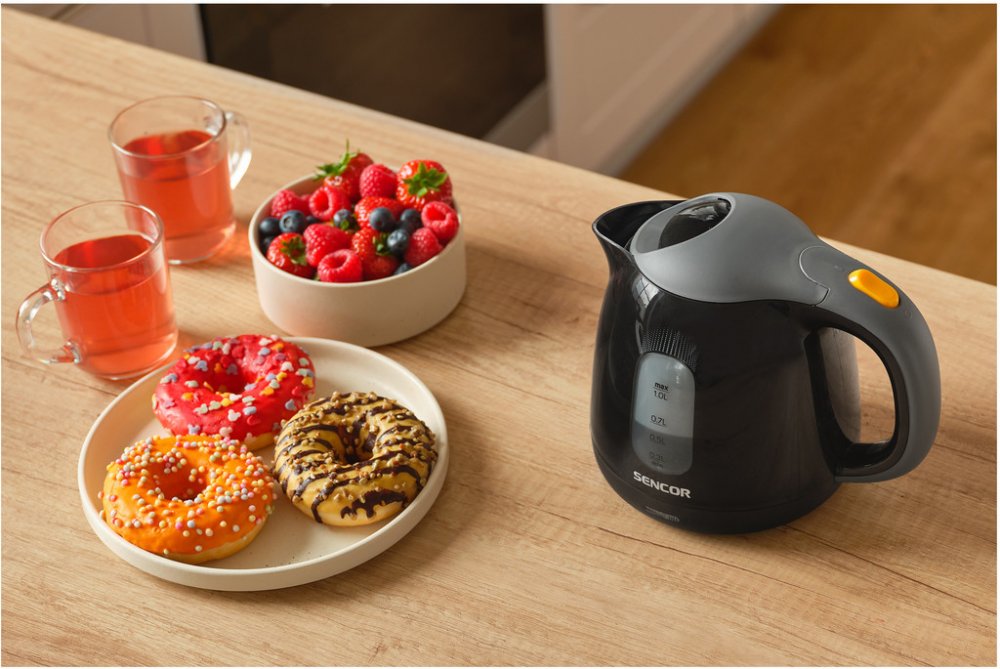 Rychlovarná konvice Sencor nabízí objem 1 l a zajišťuje snadnou i rychlou přípravu čaje či kávy. Konvice je zhotovena z plastu. Vyjímatelný filtr zadržuje nečistoty či případný vodní kámen při nalévání vody do šálku. O lepší bezpečnost se postará automatické vypnutí při nedostatku vody. Topná spirála se nachází pod dnem, tímto je chráněna před možným usazováním vodního kamene. Hlavní vlastnosti ry...