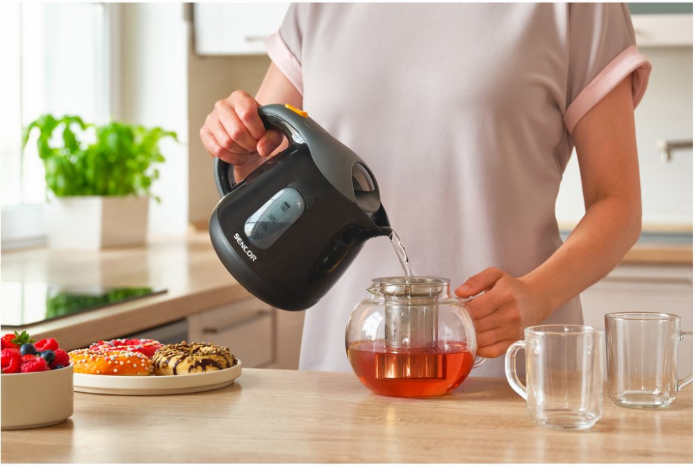 Rychlovarná konvice Sencor nabízí objem 1 l a zajišťuje snadnou i rychlou přípravu čaje či kávy. Konvice je zhotovena z plastu. Vyjímatelný filtr zadržuje nečistoty či případný vodní kámen při nalévání vody do šálku. O lepší bezpečnost se postará automatické vypnutí při nedostatku vody. Topná spirála se nachází pod dnem, tímto je chráněna před možným usazováním vodního kamene. Hlavní vlastnosti rychlovarné konvice SENCOR SWK 1101BK Varná konvice Sencor umožňuje snadnou a rychlou přípravu nápojů Nabídne objem 1 l a její příkon činí 1100 W Konvice je zhotovena z plastu Její vstupní napětí činí 230 V, proto je potřeba zapojení do klasické elektrické zásuvky Součástí její výbavy je vyjímatelný filtr Ukazatel vodní hladiny umožňuje přesnou kontrolu množství vody v konvici LED světlo signalizuje aktivní provoz přístroje Barva konvice je černá Nabídne spolehlivý provoz i praktické vlastnosti Ukazatel vodní hladiny umožňuje přesnou kontrolu množství vody v konvici. Při zapnutí se aktivuje LED indikátor, funguje...