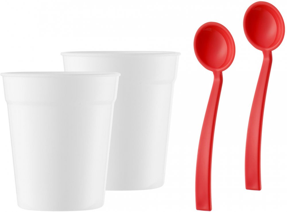 Součástí balení jsou dva šálky a dvě lžičky