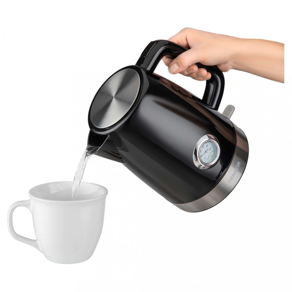 1.7 l 2150 W Sencor nerezové plast nerezové, plastové 0.72 kg 0 - 100 °C černé s anti-drip hubicí pantové víko s tlačítkem velké (pro 4+ osob) 22.2 cm