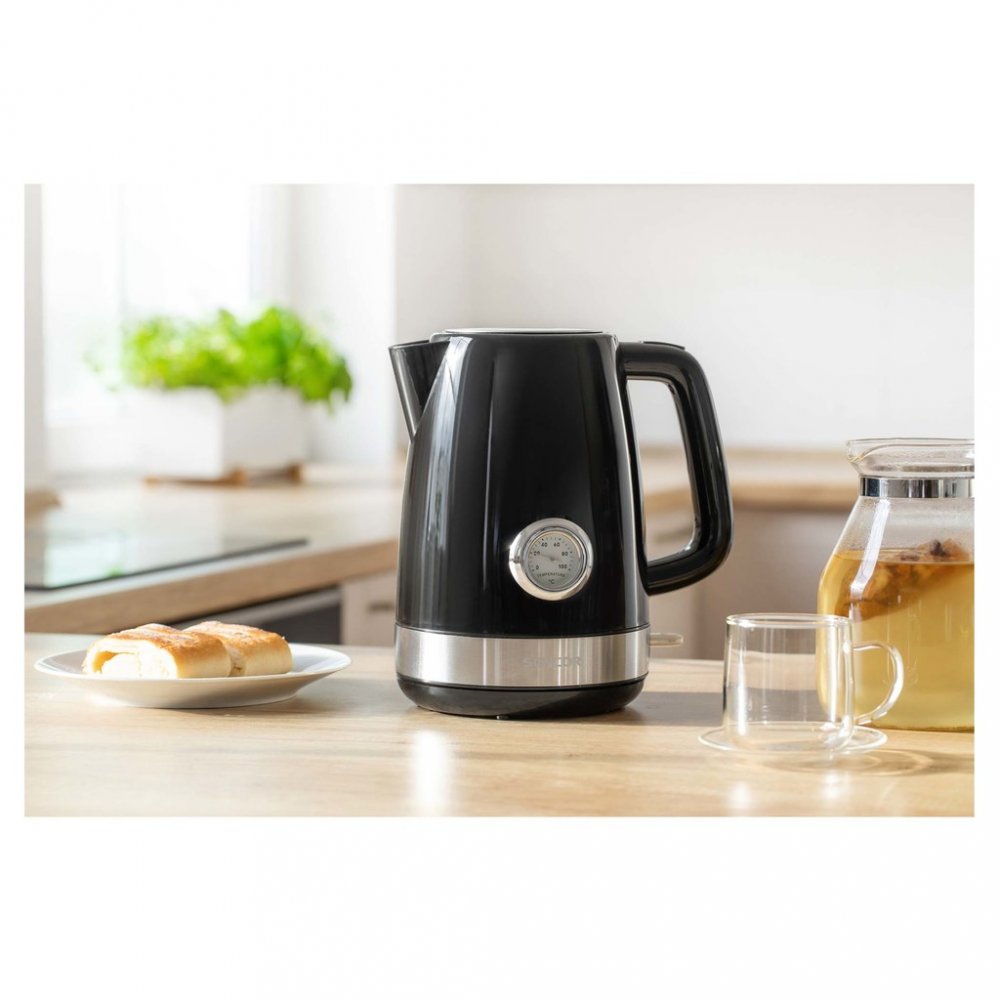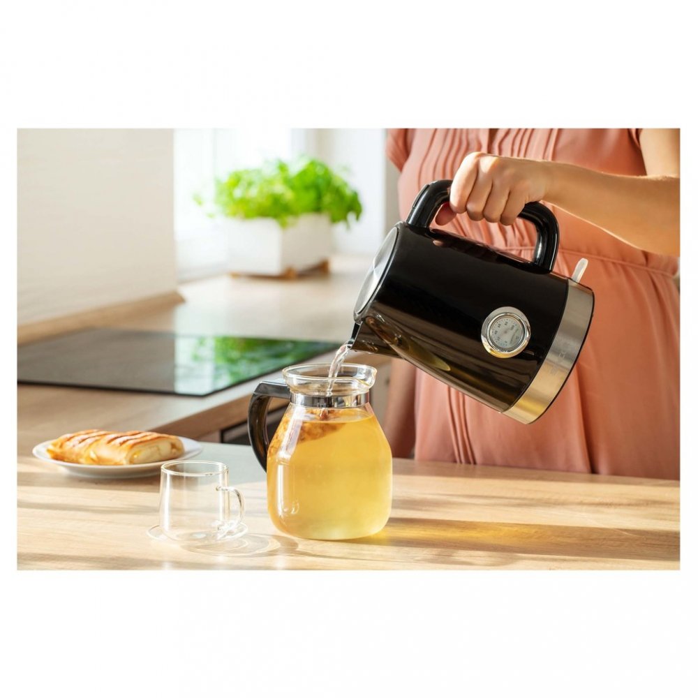 - Dosáhněte optimální teplotu pro všechny druhy čaje a další recepty. Teploměr na přední straně ukazuje aktuální teplotu vody uvnitř varné konvice