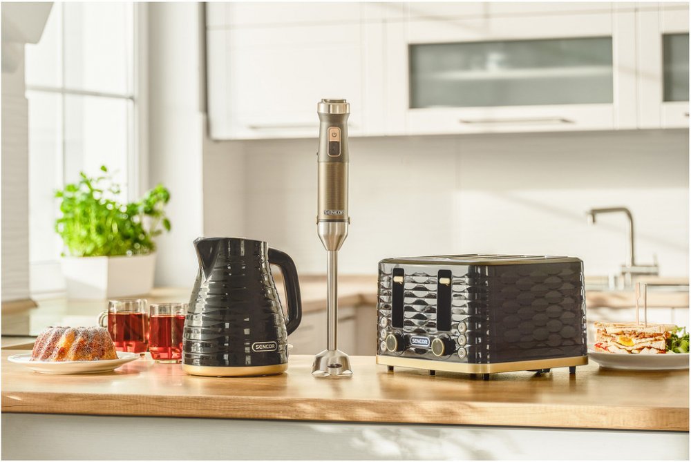 Pokud hledate elegantni spotrebice s premiovym designem, ktere skvele doplni vasi kuchyn, rychlovarna konvice SWK 7501BK vas prekvapi chytrou kombinaci retra a moderniho stylu se vzorkem. Stejnou designovou myslenku prinasi i toaster STS 7501BK, ktery dokaze konvici elegantne doplnit, pokud se pro nej take rozhodnete.