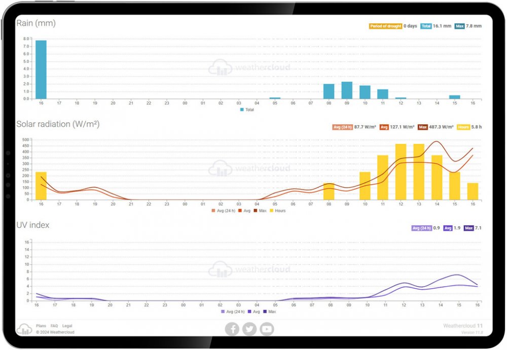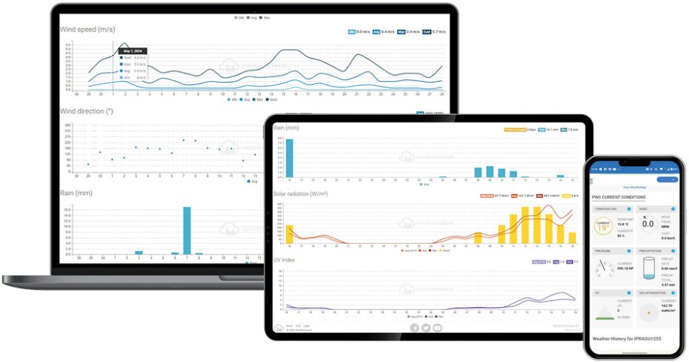 Podpora globálních veřejných meteorologických platforem Weather Underground a Weathercloud + 1 další vlastní platforma