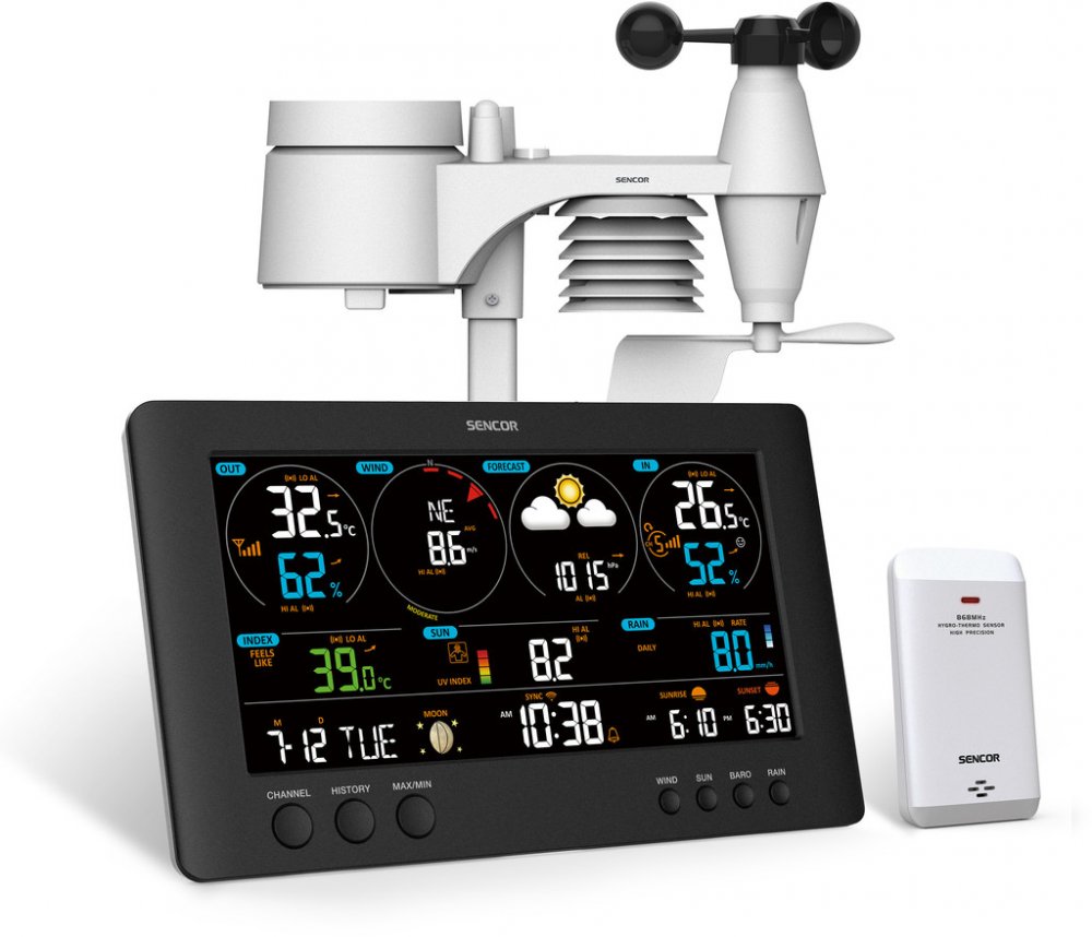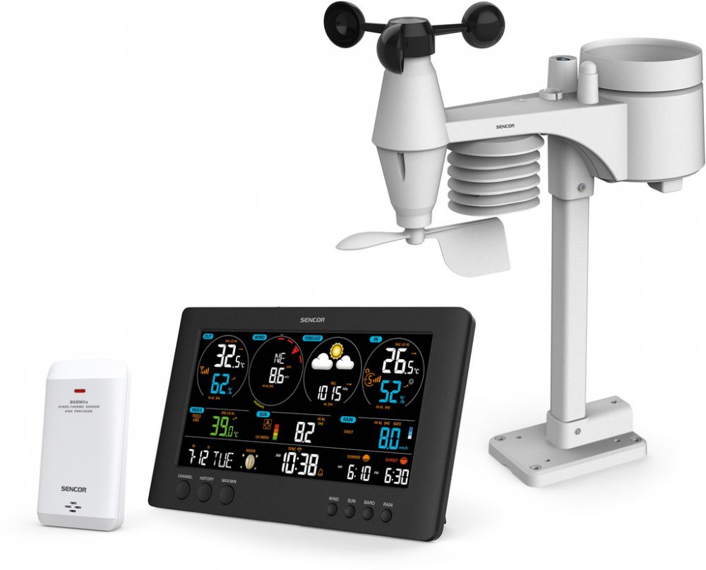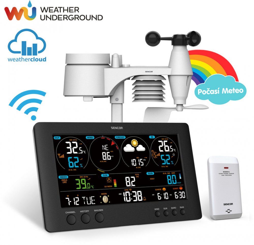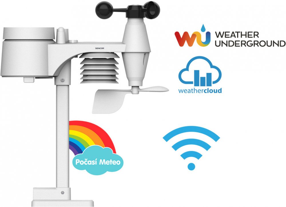 SWS 12500 WiFi METEOSTANICE PRO. SENCOR WiFi profesionální meteorologická stanice s bezdrátovým senzorem 7v1 a s TH senzorem