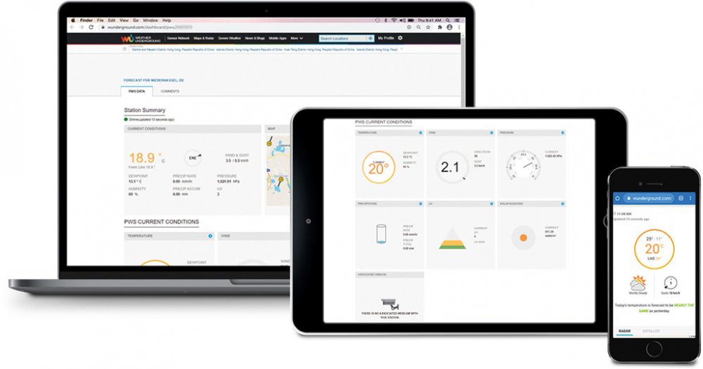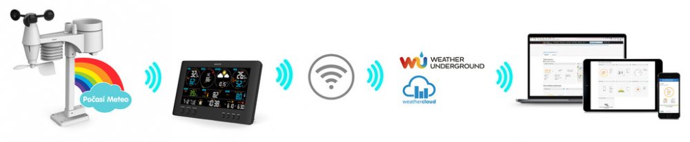 Největší výhodou meteorologické stanice SWS 12500 WiFi je ovšem bezdrátový přenos informací a neustálý online přístup odkudkoli. S tímto přístrojem se navíc můžete stát součástí světové komunity sdílející aktuální meteorologické informace a údaje – publikování dat na veřejných meteorologických platformách „Weathercloud" případně „Weather Underground" anebo na tuzemském portálu „Počasí Meteo" je jednoduché a velmi užitečné. Dostatečně velký barevný displej, snadné ovládání i kompaktní rozměr, to jsou další nezanedbatelné klady prvotřídního přístroje, který vás rychle začlení mezi meteorologicky zcela nezávislé a soběstačné domácnosti.