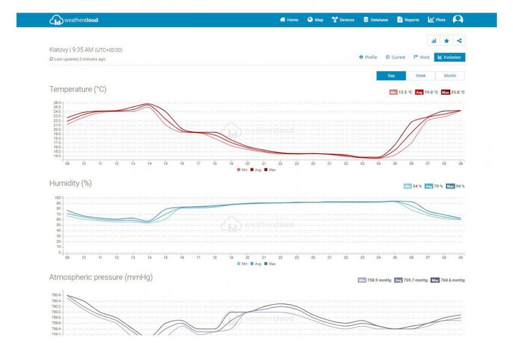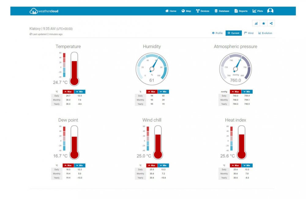 Podpora globálních veřejných meteorologických platforem „Weather Underground" a „Weathercloud"