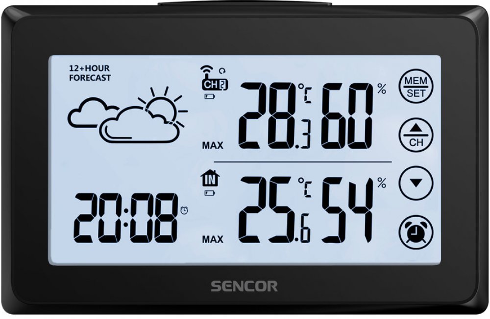 Sencor 20 % až 95 % RV vlhkost °C 50 m meteostanice bateriové