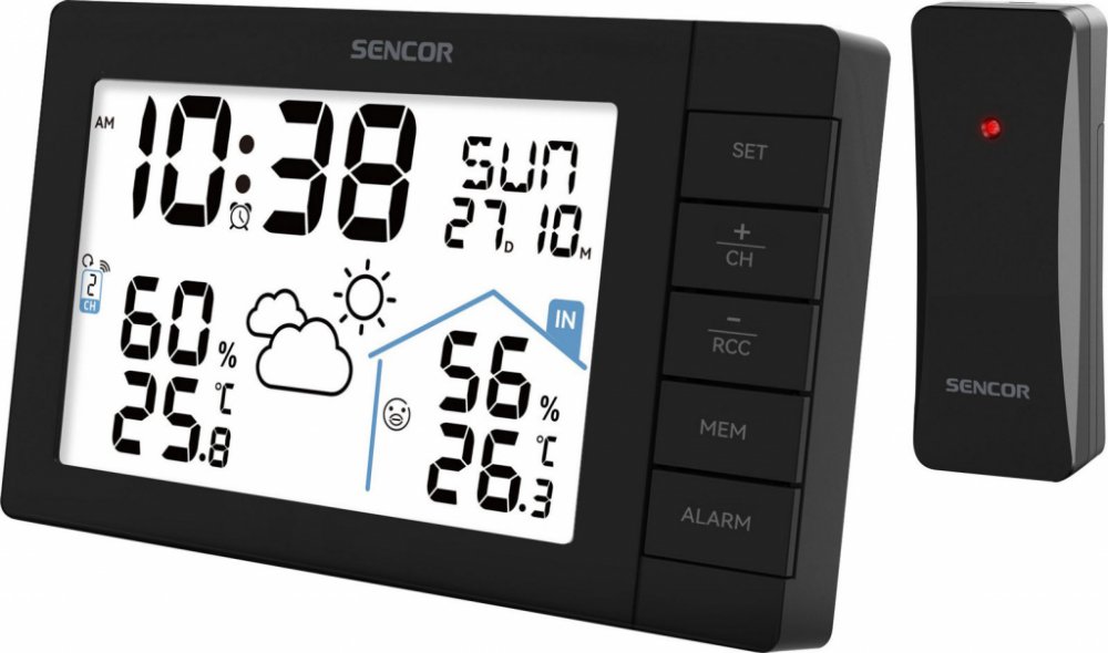 Meteostanice SENCOR SWS 3200 umí sledovat venkovní i vnitřní teplotu ve stupních Celsia a Fahrenheita a vlhkost vzduchu v procentech. Vydává varování v případě mrazu, které ocení motoristé a osoby se zhoršenou schopností pohybu, a také umí předpovídat počasí ve formě grafických ikon (déšť, jasno, polojasno a další). Na displeji se zobrazuje aktuální čas řízený rádiovým signálem.