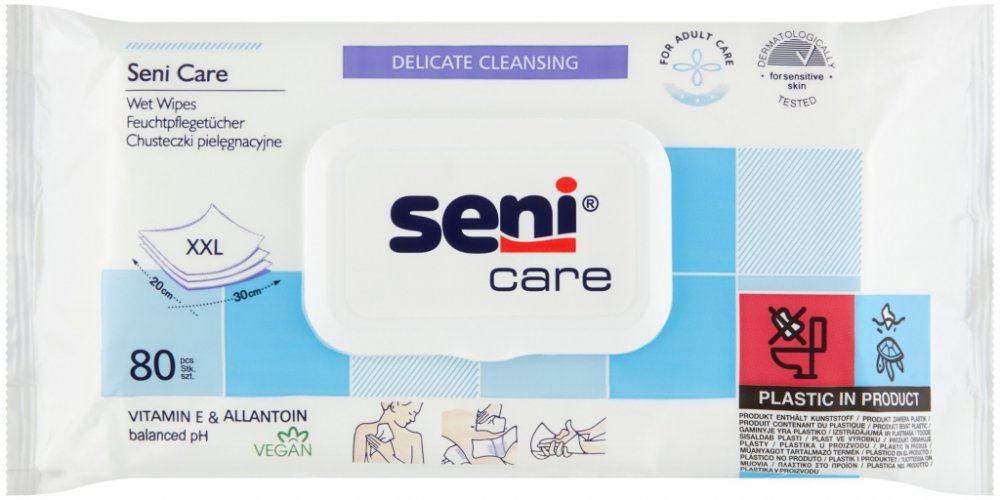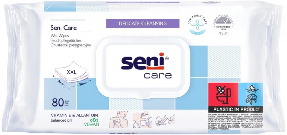 Seni Care Vlhčené ubrousky vit.E&Allantoin 80 ks